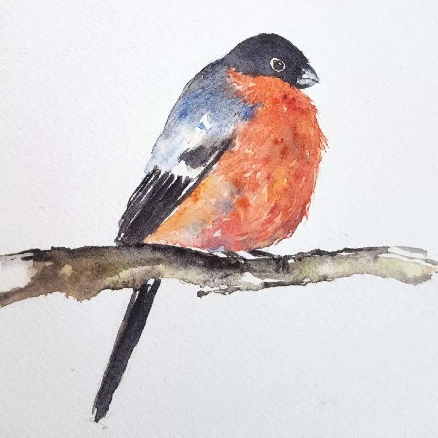 Learn simple techniques to Mix wet on wet with wet on dry to paint a cute Bullfinch.
