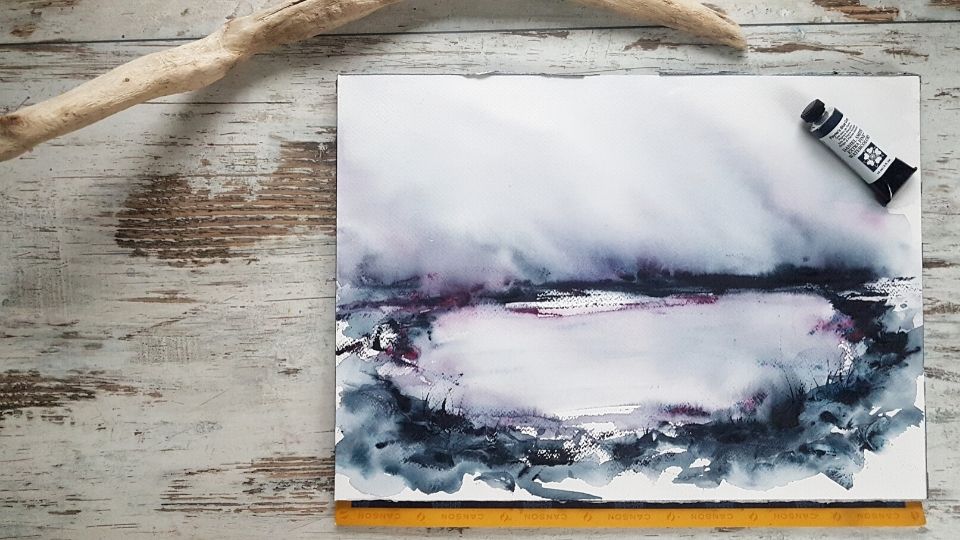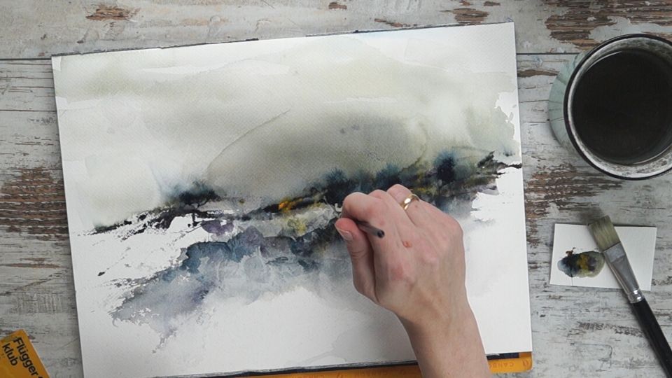 Enjoy the mixing of colors while creating flow in the sky and texture in the foreground.