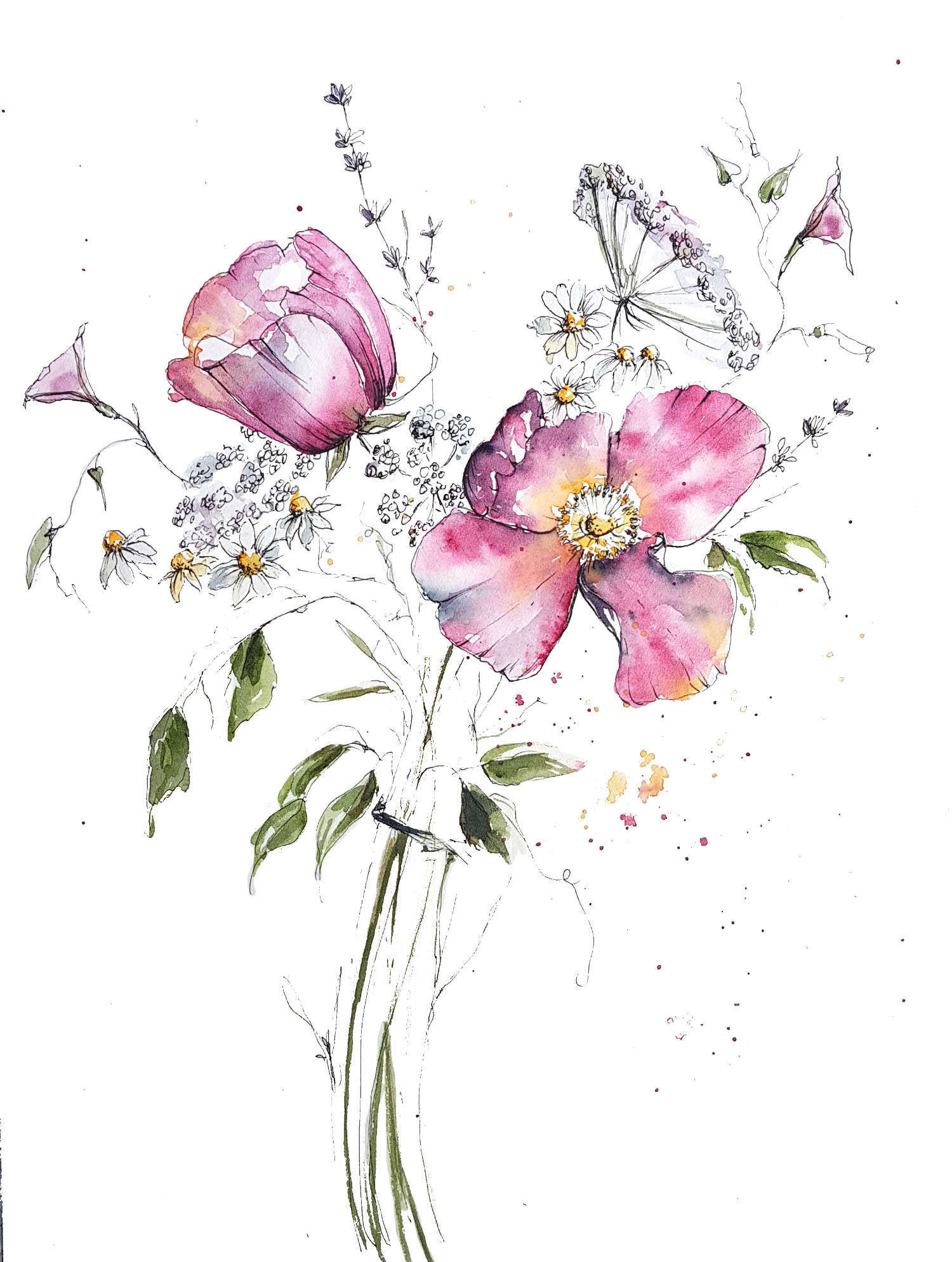 First You learn step by step how to sketch Daisy, Bindweed, Wild Rose, Queen Anne Lace and LAvendar.
